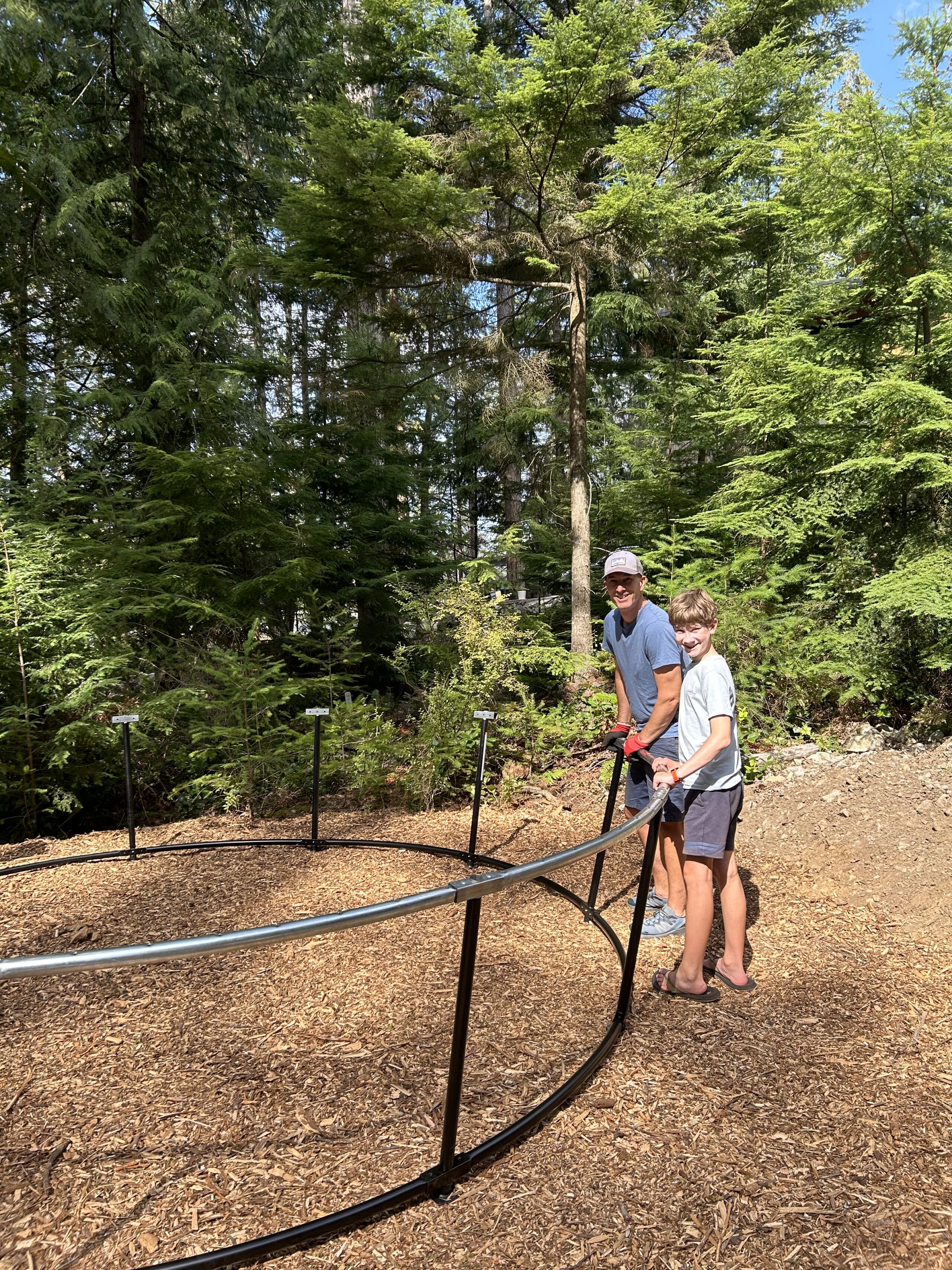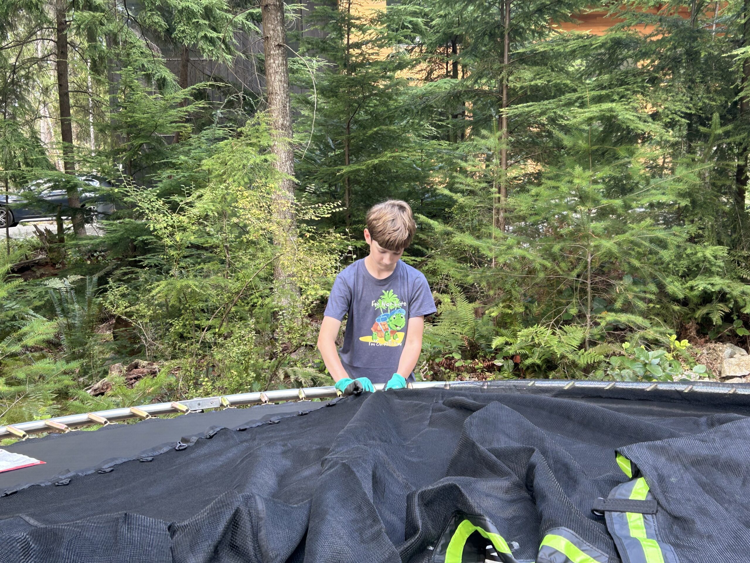 So, we cleared a special corner of the backyard, leveling the ground and spreading woodchips made from fallen winter branches—preparing the perfect spot for what I hoped would become a cornerstone of his childhood memories, just as my own trampoline had been for me.