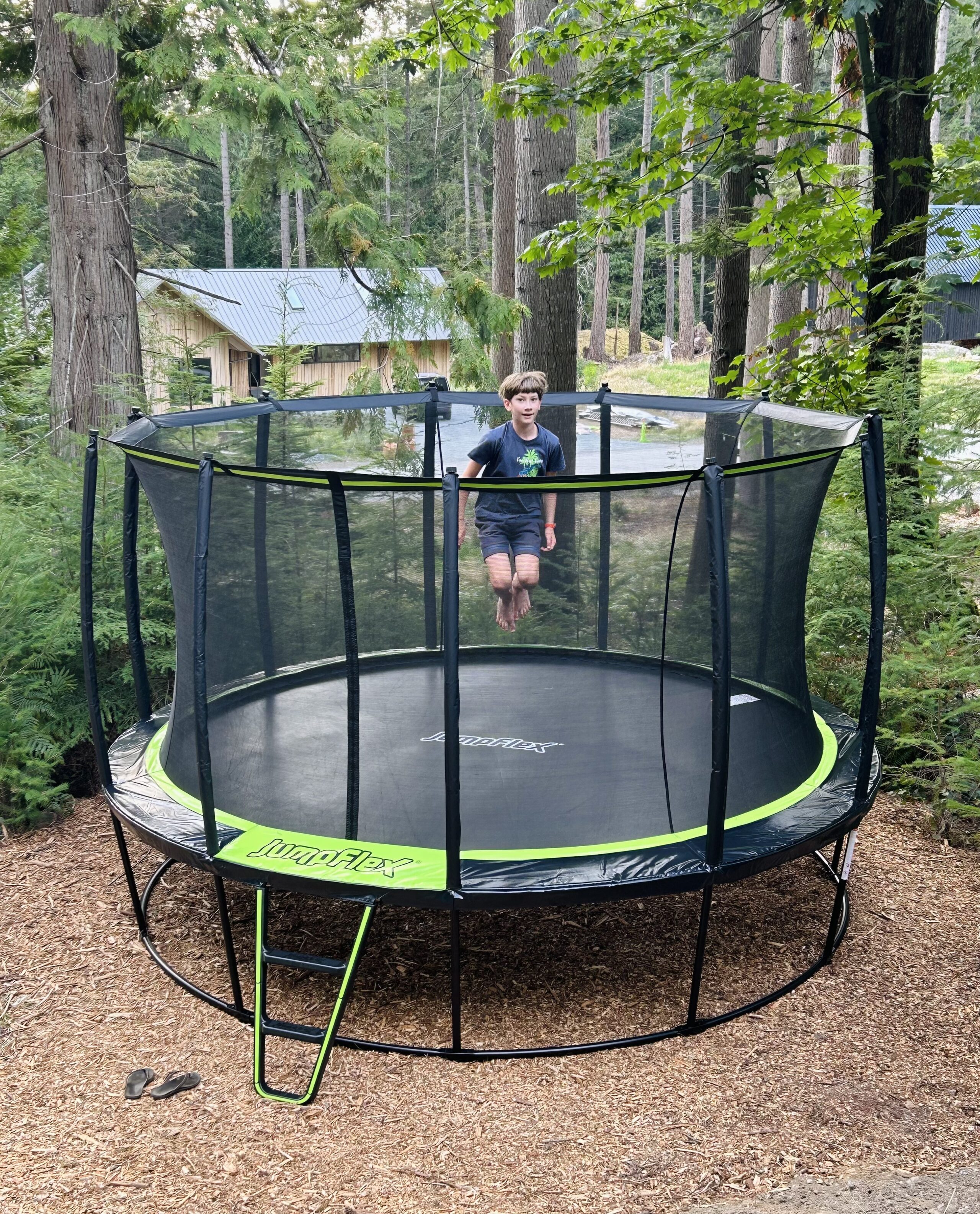 But something surprising happened once we set up our Jumpflex trampoline—the enclosure didn’t feel like a barrier at all. Instead, it created what my son now calls his “sky room”—a magical outdoor space that’s become so much more than just a place to bounce.