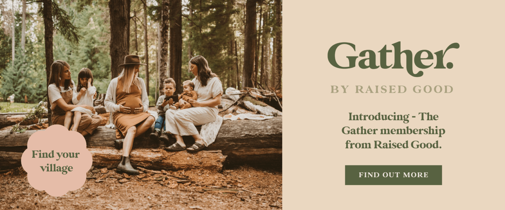 In early 2023, the Raised Good membership community Gather was created for just that purpose. It’s a place for you to feel seen and heard – a resting place for natural parents to find their tribe, their village, and their friends. Click here to learn more about how you can join this supportive community.