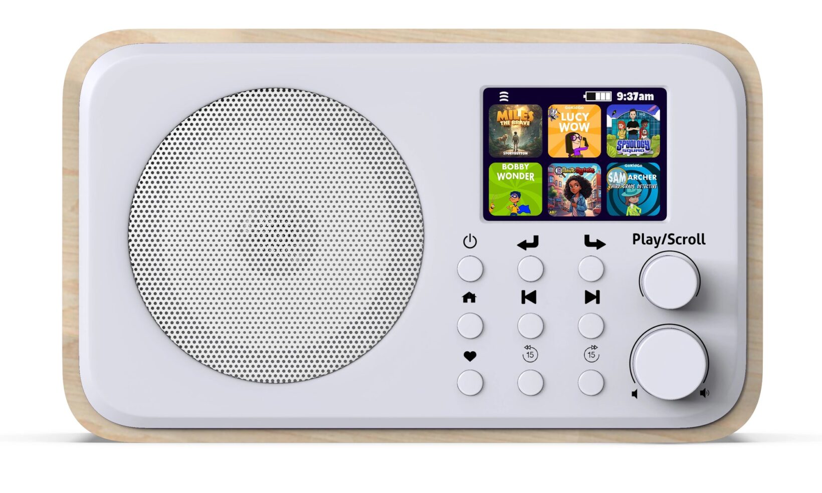 The StoryButton is a super cute, almost old-school radio vibe podcast player that opens the world of audiobooks, stories, and educational podcasts for our children all without the need for a phone or subscription.